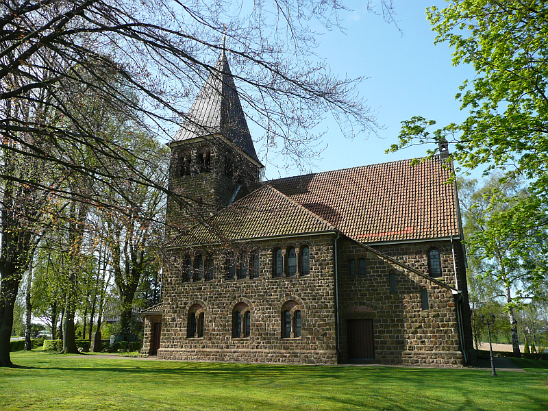 Nach der Grundsteinlegung im Sommer 1910 wurde die Hagedorner Kirche am 30. Mai 1911 eingeweiht. Erbaut wurde sie vom Architekten und ehemaligen Mönch Joseph Campani als Dorfkirche im Neoromanischen Rundbogenstil (siehe auch Historismus).